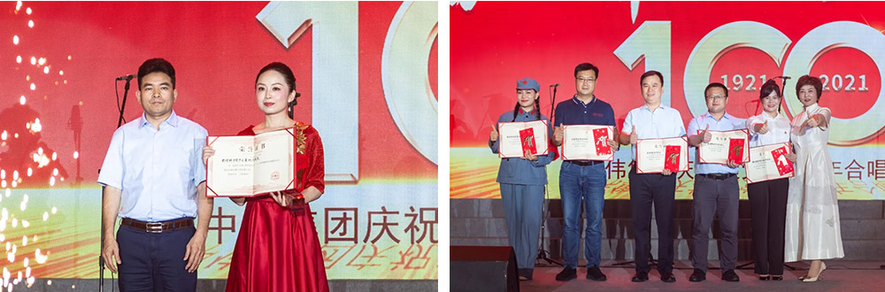此次活動還舉行了“黨員先鋒崗”的頒獎儀式,來自全集團的10名黨員先鋒榮獲此殊榮,并隨后與其他部分黨員代表一起重溫了入黨誓詞。聲聲誓言響徹耳邊,鮮紅的黨旗在舞臺上飄揚。晚會尾聲,全場起立,共同高唱《沒有共產(chǎn)黨就沒有新中國》,熱烈的掌聲經(jīng)久不息。