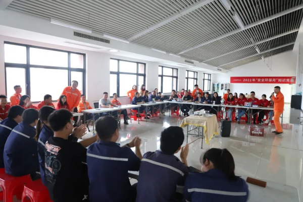 競賽分為必答題、搶答題、風(fēng)險(xiǎn)題3個(gè)環(huán)節(jié),競賽題型多樣,內(nèi)容豐富,涵蓋《中偉員工安全手冊(cè)》《安全生產(chǎn)法》《危險(xiǎn)化學(xué)品安全管理?xiàng)l例》《特種設(shè)備安全法》《安全色》《環(huán)保法》及公司安全、環(huán)保等管理制度,從各個(gè)部門、車間中脫穎而出的6支代表隊(duì)上演了一場精彩對(duì)決。