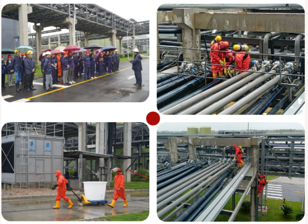 為深入貫徹全國安全生產(chǎn)月主題,中偉欽州產(chǎn)業(yè)基地積極行動(dòng),緊密結(jié)合當(dāng)?shù)貙?shí)際開展安全活動(dòng)。為應(yīng)對(duì)欽州即將到來的臺(tái)風(fēng)暴雨頻發(fā)季,保證欽州產(chǎn)業(yè)基地項(xiàng)目工程、人員、設(shè)備設(shè)施等的安全,6月14日下午,欽州產(chǎn)業(yè)基地開展防臺(tái)防汛應(yīng)急演練活動(dòng)。演練模擬臺(tái)風(fēng)登陸欽州,并伴有大暴雨到特大暴雨,通過設(shè)定罐區(qū)發(fā)現(xiàn)高位罐底處管廊管道由于大風(fēng)造成管線歪斜,造成法蘭處泄漏、溶解車間倉庫由于雨量過大導(dǎo)致窗戶被碎石打破發(fā)生漏雨兩個(gè)場景進(jìn)行。演練正式啟動(dòng)后,各應(yīng)急處置小組在現(xiàn)場指揮下統(tǒng)一行動(dòng),配合高效,在溶解車間倉庫迅速安裝防洪擋板、搬運(yùn)水袋、鋪設(shè)水帶,在罐區(qū)迅速組織對(duì)泄漏管道進(jìn)行搶修,對(duì)滯留人員進(jìn)行疏散,各任務(wù)完成反饋及時(shí)。